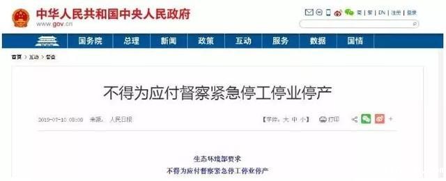环境部发文件明确,被督察省(市)、集团公司不得为应付督察而不分青红皂白地采取紧急停工停业停产等简单粗暴行为,以及“一律关停”“先停再说”等敷衍应对做法。